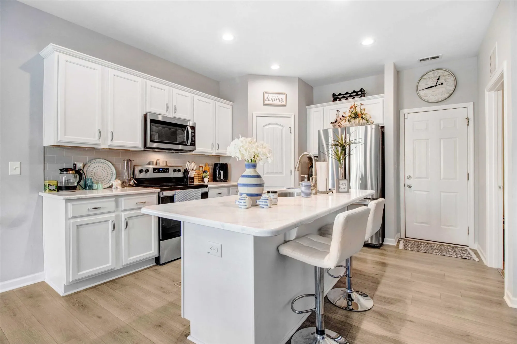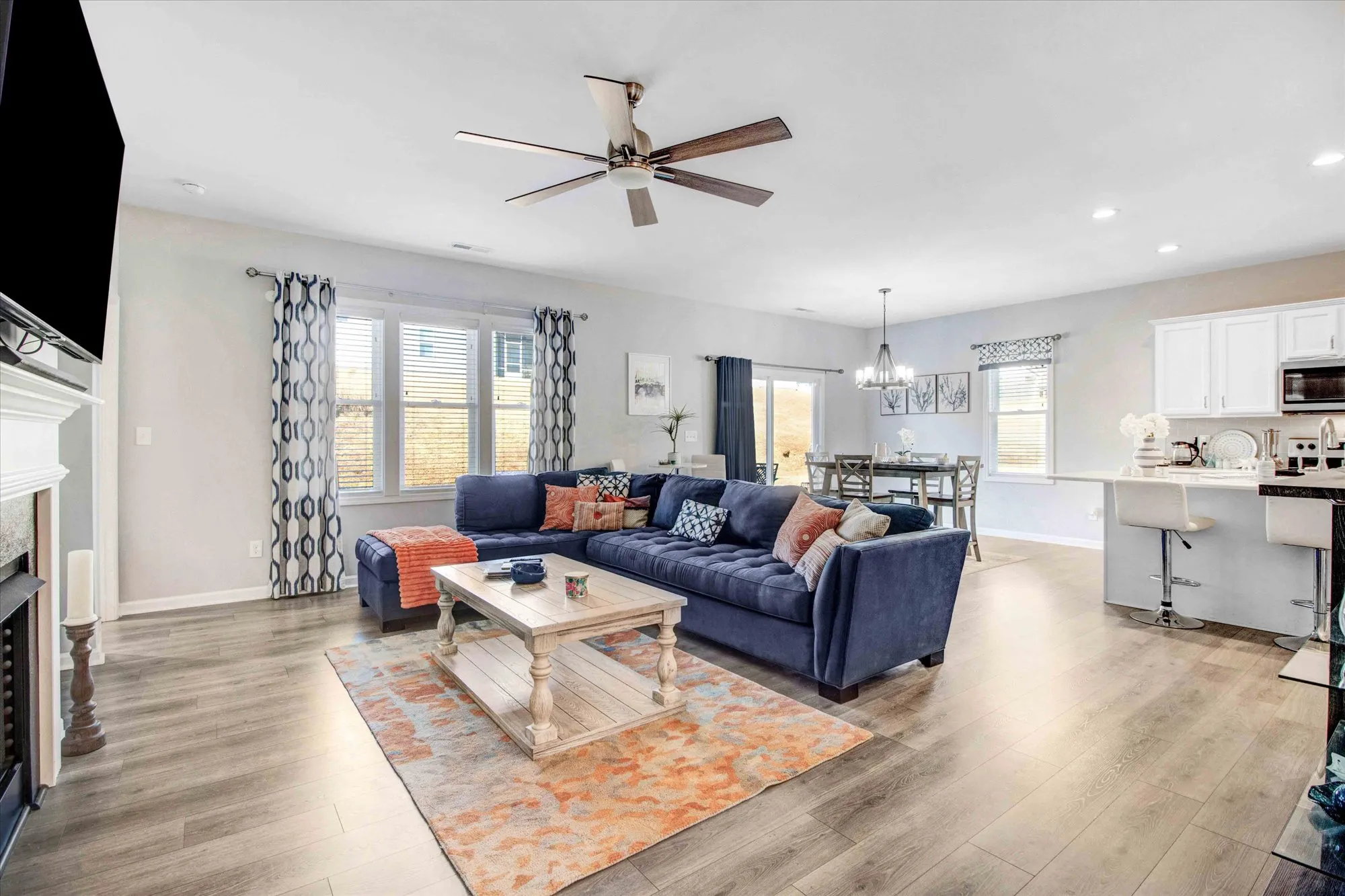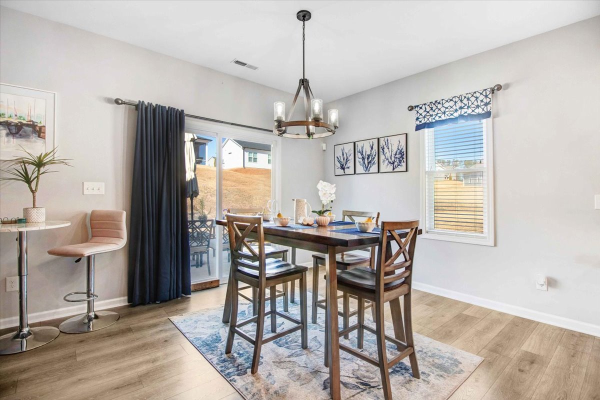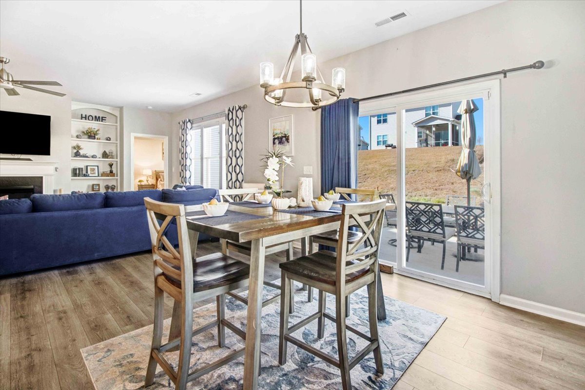 This beautiful Nicklaus ranch plan offers a perfect blend of comfort and style. The open-concept floor plan features 3 generously sized bedrooms and 2 bathrooms. The heart of the home is the stunning kitchen, boasting beautiful white cabinetry, gleaming quartz countertops, and stainless steel appliances. A large island provides ample workspace and seating. The adjacent family room invites relaxation with a cozy gas log fireplace and built-in bookshelves. The luxurious master suite is a true retreat, complete with a tray ceiling, upgraded ceiling fan, a spacious walk-in closet, and a 5ft shower. This home comes with a one year home warranty. This home is a must-see.